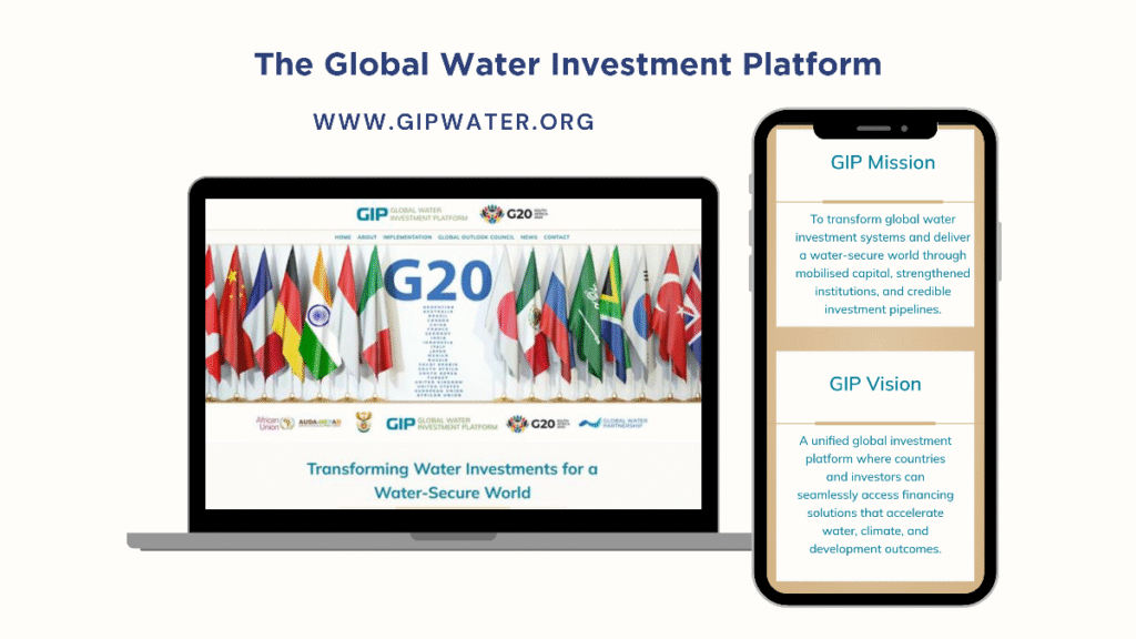 The Global Water Investment Platform was launched in August 2025 during the AU-AIP Africa Water Investment Summit by H.E Cyril Ramaphosa, President of South Africa, as a G20 Presidential Legacy Initiative on Water Investments.